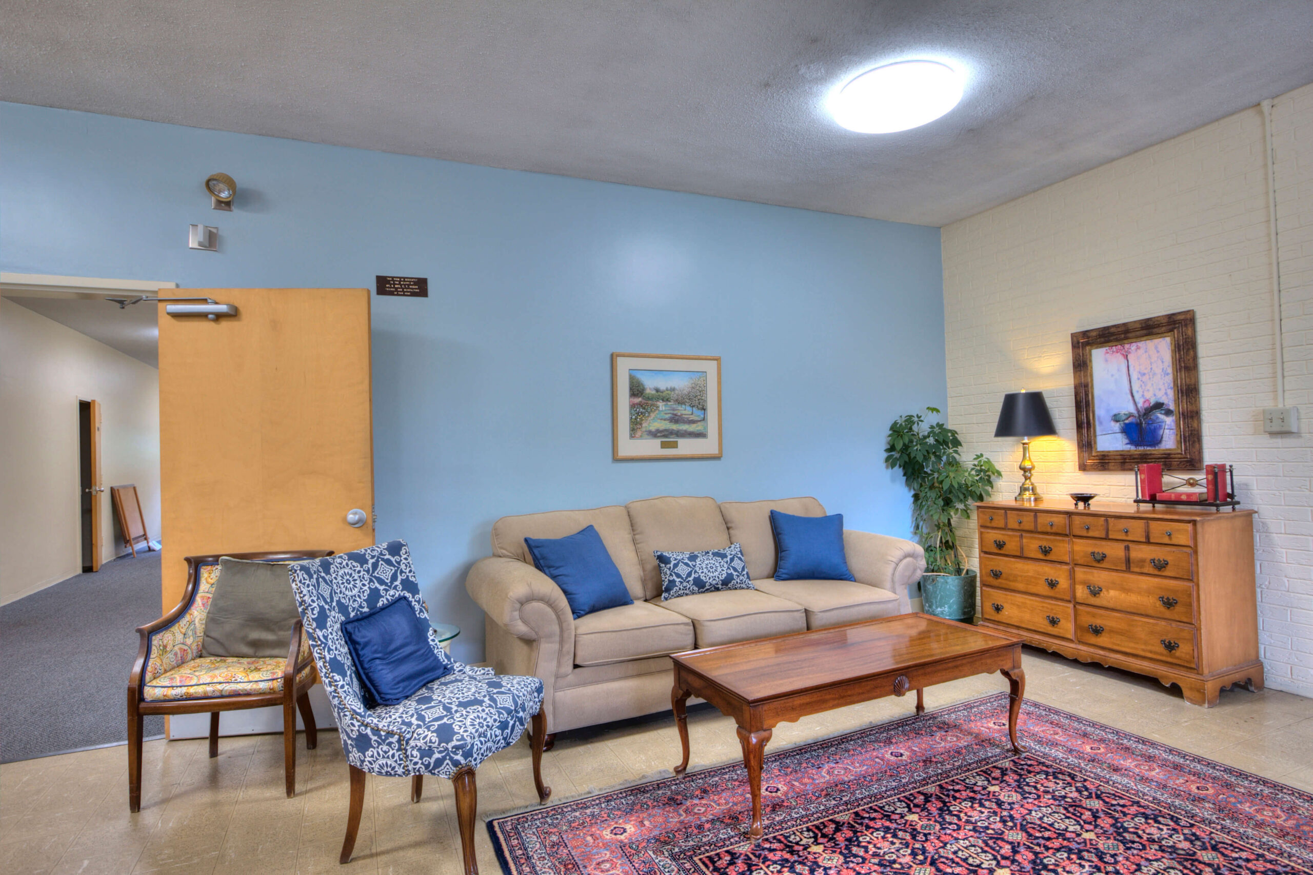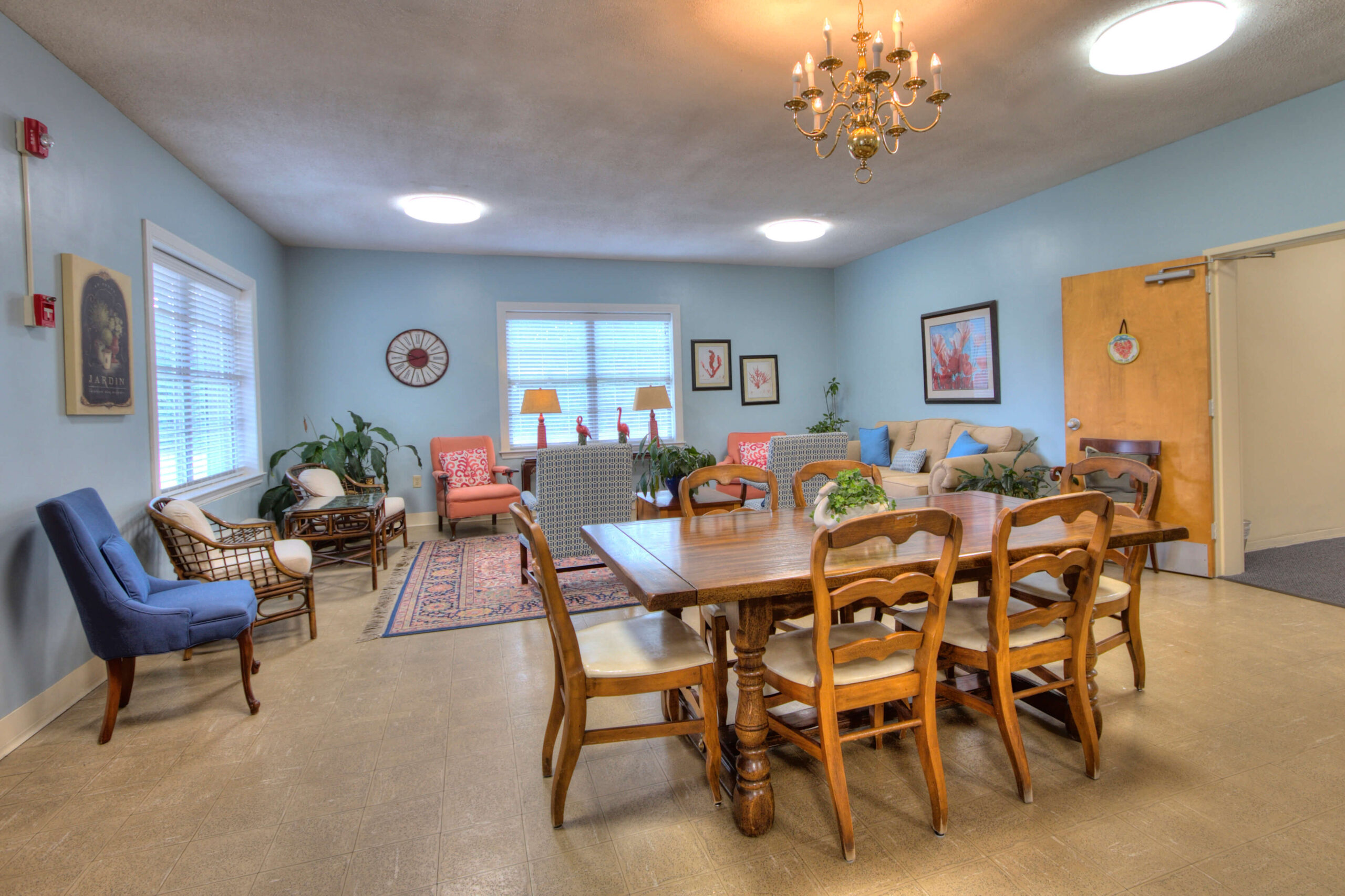 Solomons Home has seventeen rooms that each have an independent bathroom with a walk-in shower. All room have a large walk-in closet for your convenience along with cable hook ups for your television which is provided to all residents.