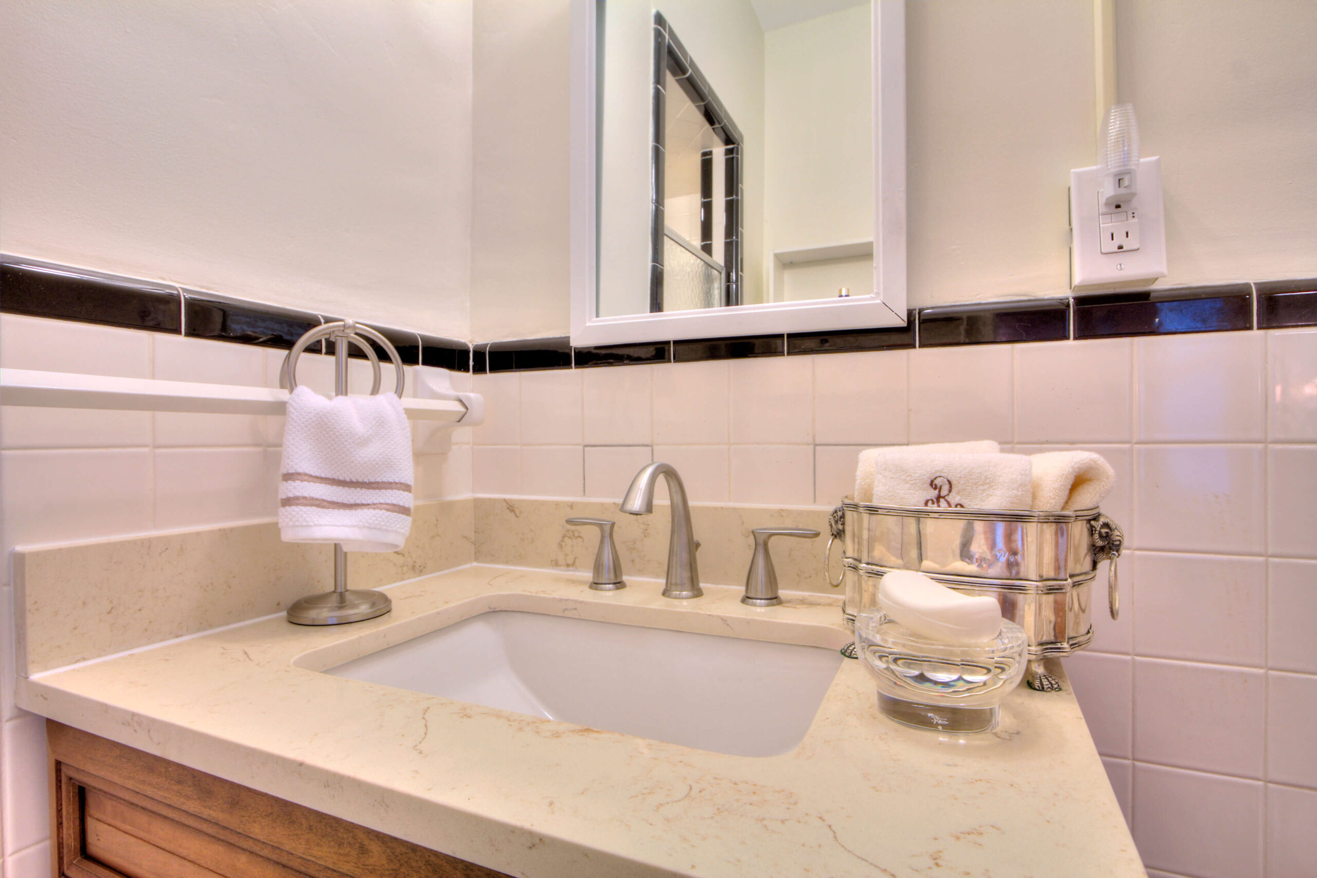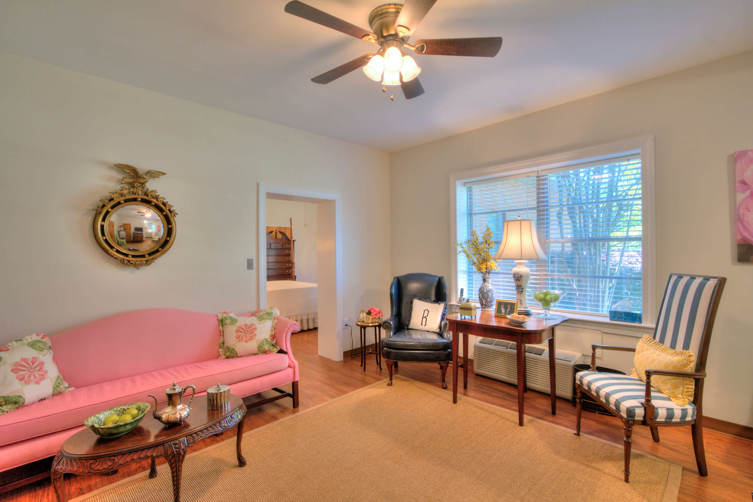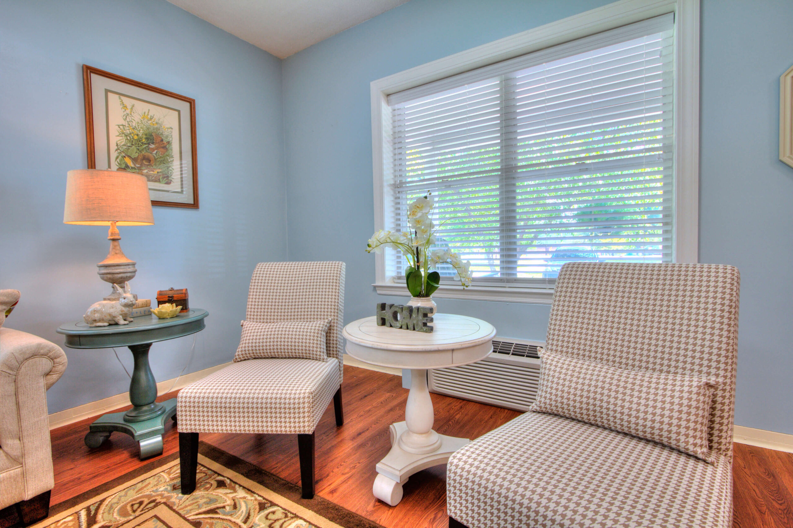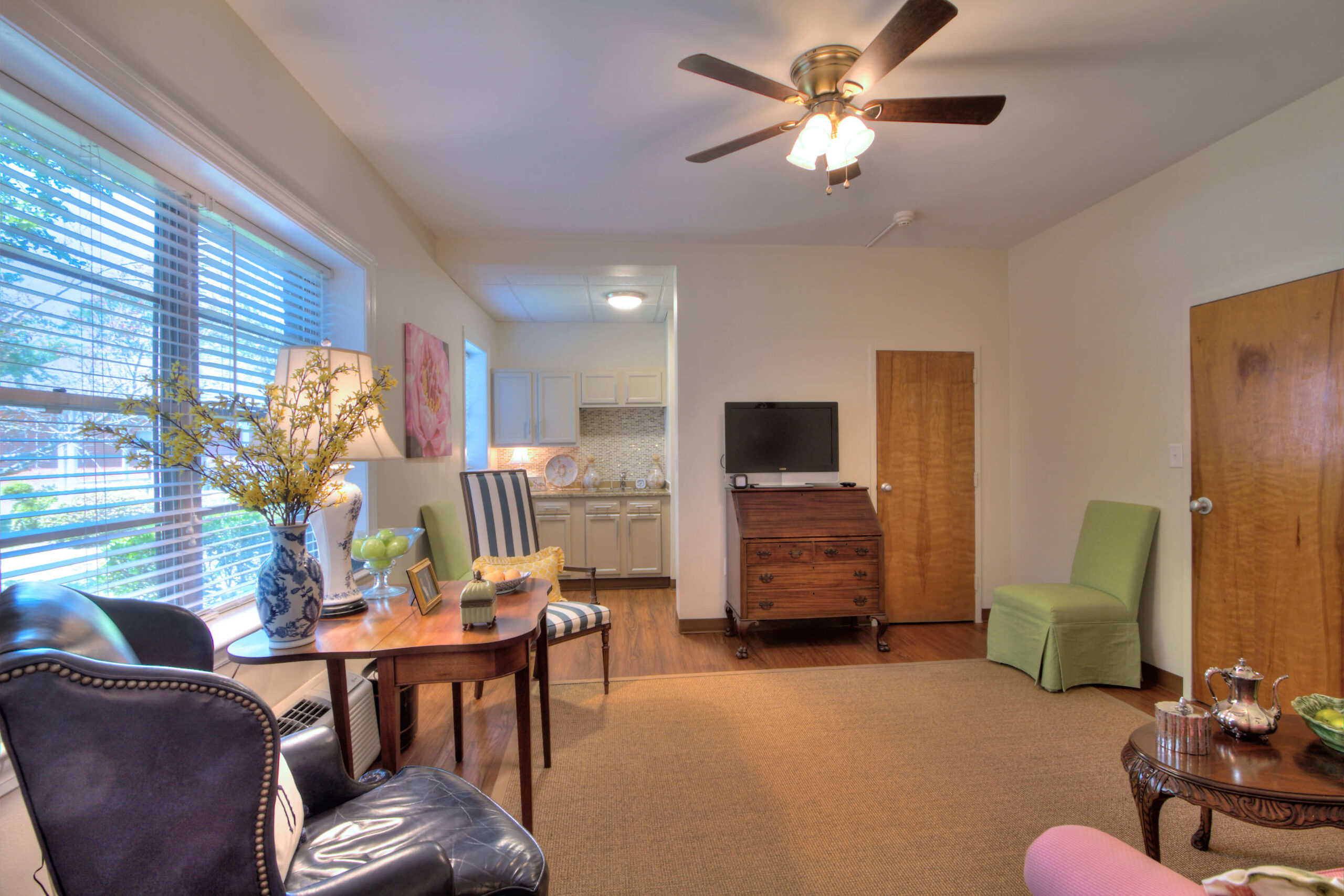 Solomons Home has four beautiful, recently renovated suites that have all the same amenities as our single rooms with the addition of a separate living room area and a second closet. Our suites also include a lovely kitchenette with granite countertops, glass tile backsplash, generous cabinets and drawers and a deep stainless steal sink. There is also space for a microwave, a small refrigerator and a kitchen table.